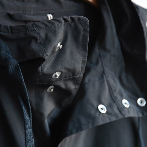 薄手ながら打ち込みのしっかりしたポリエステルナイロン素材を使用した春物コートで、フロントはスナップボタン、袖はM-65のような立体的に作られていますのでストレスのない着用感がポイントです。
