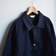 こちらは、コンパクト糸のムラがおとなしい糸と完全にムラのないストレートの糸を使用したスッキリと上品な印象の生地を採用して作られたデニムジャケットになります。