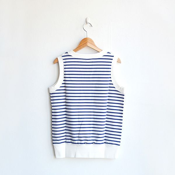 その名のとおり見た目にもヘルシーなこちらは、しっかりとした肌触りが滑らかなコットン生地で作られたノースリーブカットソーで袖や裾にしっかりとしたリブを付けていますので安心感のある1枚に仕上がっています。
