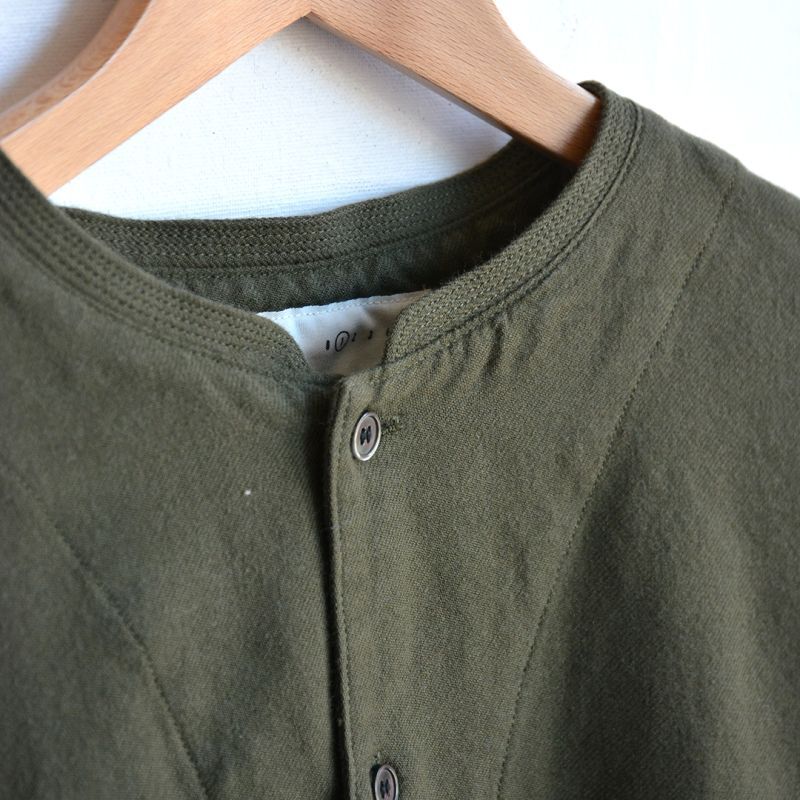 こちらは、ヴィンテージ感のあるウールコットン素材を使用したロング丈シャツワンピースで、生地をたっぷり使用していることで、着た際にふんわり愛らしいシルエットになるのが特徴です。