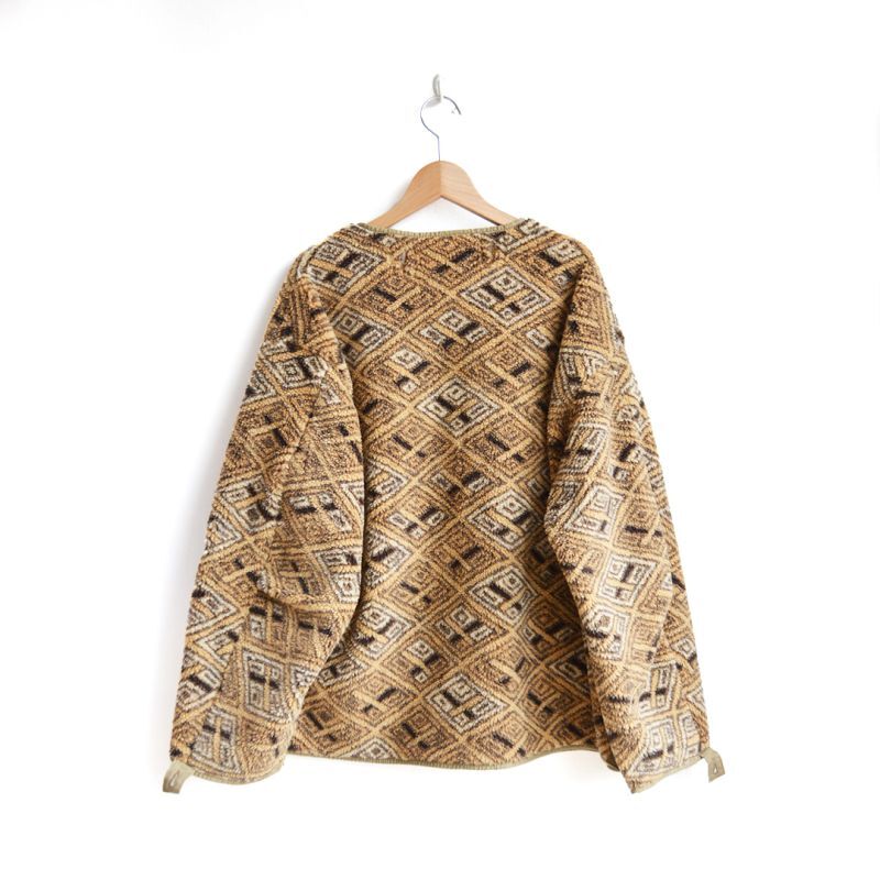 アフリカ クバ王国のヴィンテージ クバクロスからインスピレーションを受けてジャガード織りで織られたボアフリースで、落ち着いた色味が落ち着いた総柄になっています。