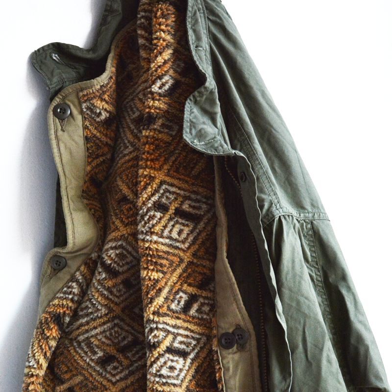 orSlowから、アフリカ クバ王国のテキスタイルをモチーフにオリジナルで作られたフリースを使用した"AFRICAN PATTERN 65 FISH TAIL COAT LINER"が届きました。