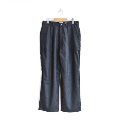 こちらは、タックとベイカーポケットがいっしょになったようなデザインが特徴のパンツで、柔らかいキレイなシルエットのウールパンツにミリタリーディテールをミックスしたバランスの良いデザインのパンツです。