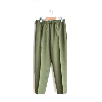 こちらは、サマーウールのような表情のポリエステル素材で作られたパンツになります。特殊な染料で染められた中厚のポリエステル生地は非常に軽量で水分を含みにくいので夏の暑い日に穿いていても蒸れることなく快適な履き心地が約束されています。