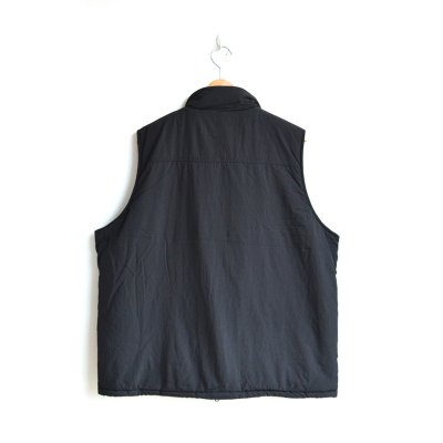 こちらは、アウターの上からも着られるオーバーサイズの設定ながら中綿量を調整したことで膨らみすぎないスッキリしたシルエットの中綿ベストになります。