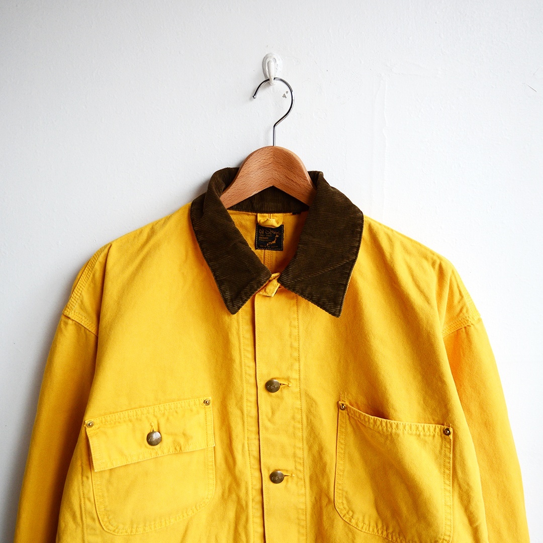 こちらは、日本の老舗帆布メーカーで織り上げた10/8オックスフォード生地を使用したボディのイエローとブラウンのコーディロイ衿が魅力のカバーオールで、機能的なフロントポケットなど、随所に無骨なディテールを持ちますが、絶妙なルーズシルエットが、無骨な印象をやわらげ現代的なスタイルに合わせやすいワークジャケットに仕上げています。