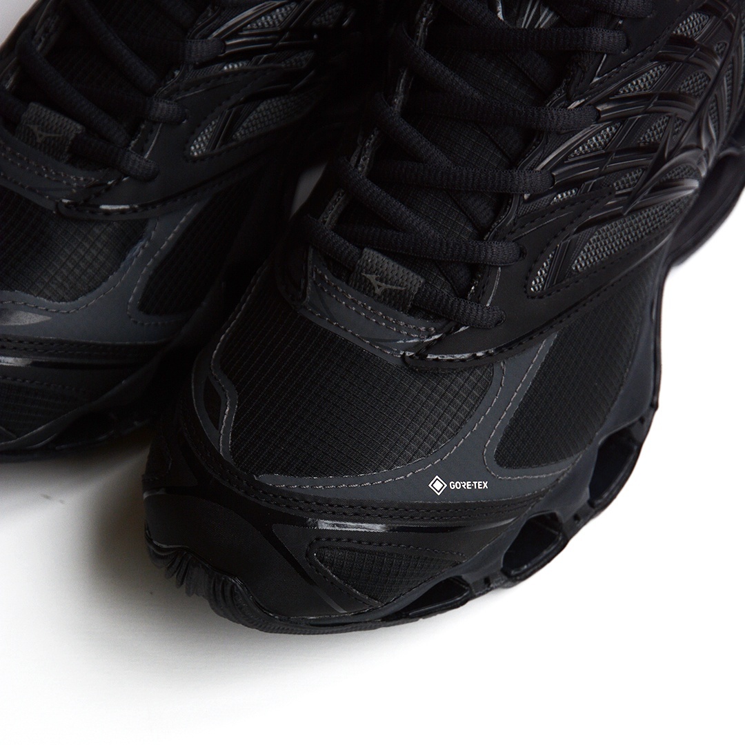 こちらは、フラッグシップモデルのWAVE PROPHECY LSにゴアテックスを搭載し、オールブラックにすることでスタイリングに合わせやすい現代的な雰囲気に仕上げたシューズです。