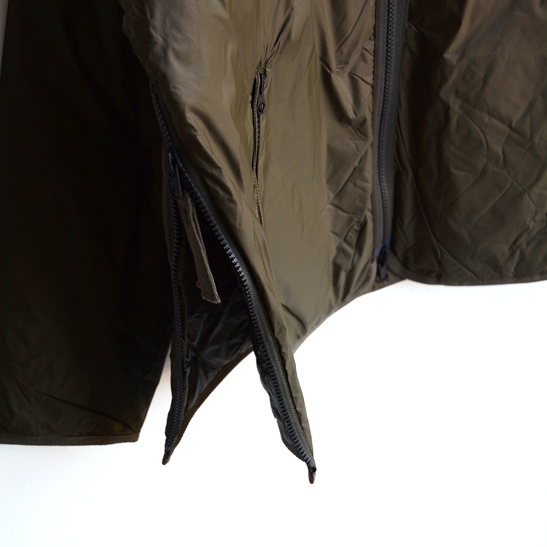 今まで有りそうで無かったデザインが特徴で、軽くて柔らかく着用感にもこだわったベストになっています。片側はヘチマダウンキルトを使用したダウンカーディガン仕様、片側はベトジャンをモチーフにしたベトジャン仕様で、その日の気分でリバーシブルに着用できるアイテムです。