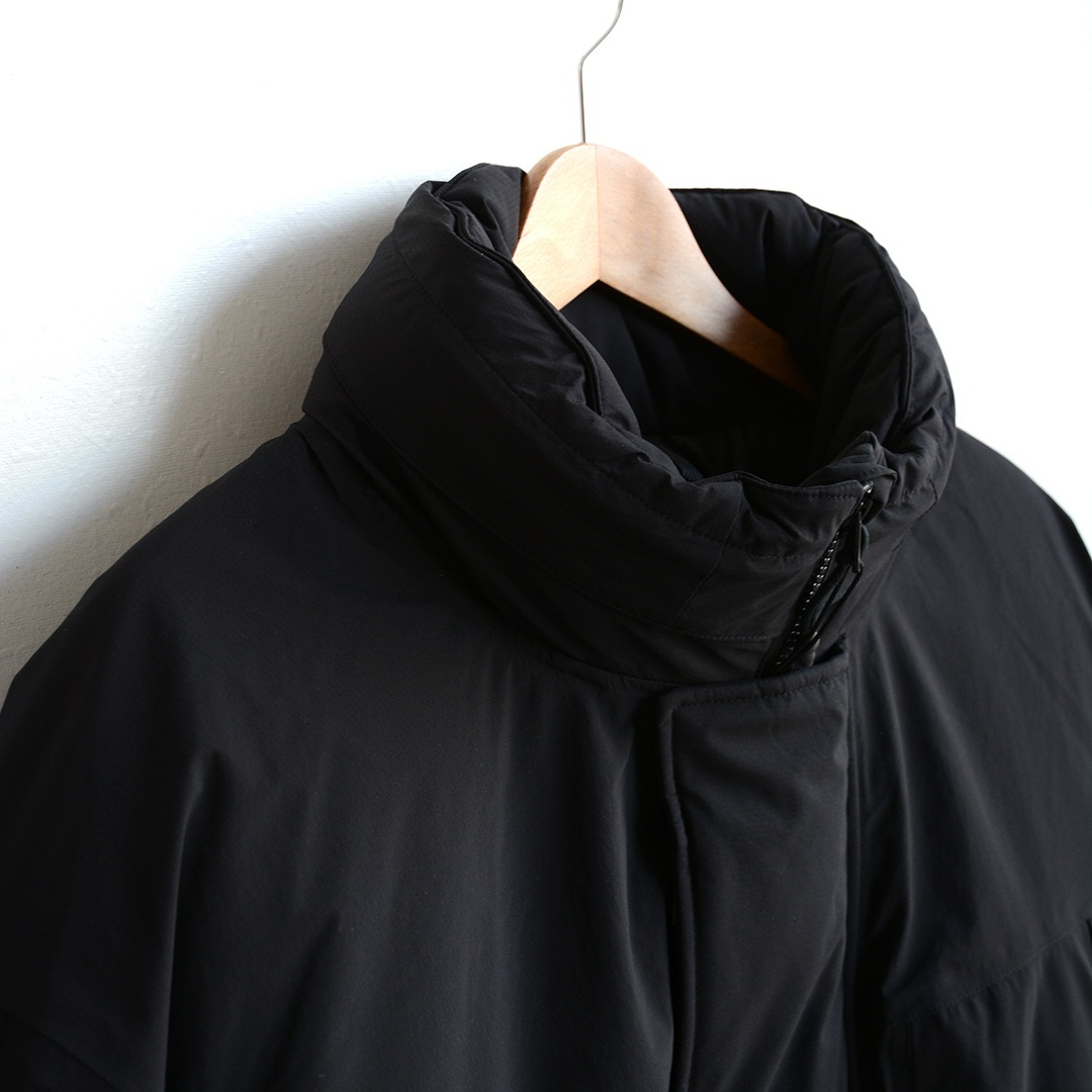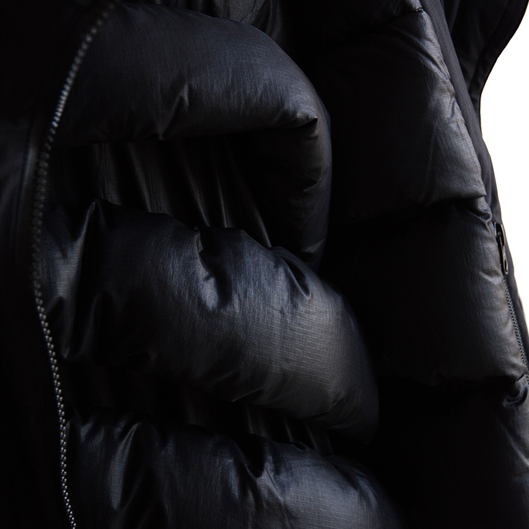 ダウンを筒状に包むことで、筒と筒の間に空気の層を作り、同じ分量のダウン製品よりも立体的なボリュームと暖かさを生み出します。ウエストのドローコードで風の侵入を防ぐことができ前開きのマグネット仕様、袖のテクニカルなパターンでテック感ある一着。 表面にロゴを入れないことでシンプルで洗練されたデザインも新しい一面です。