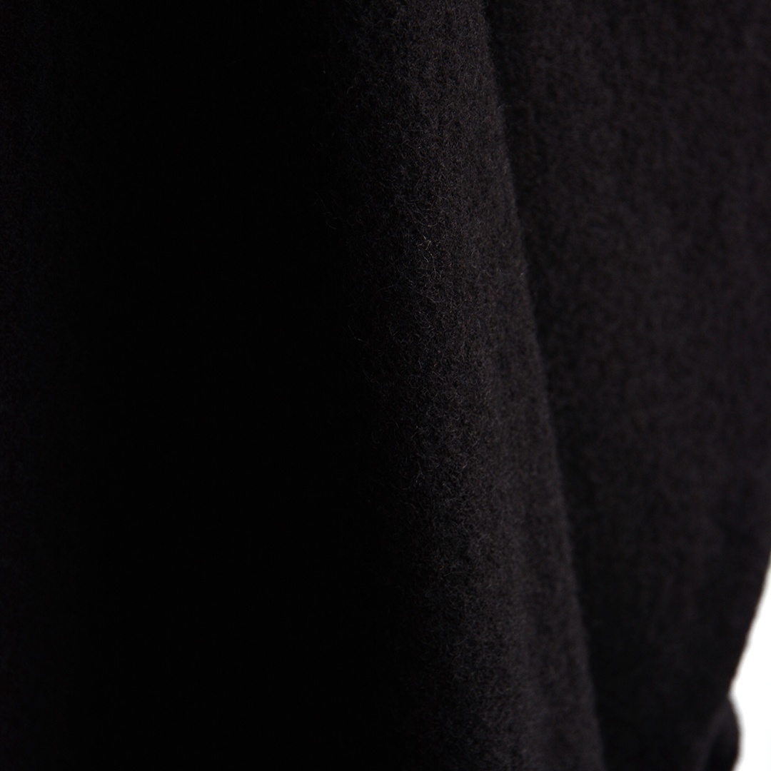 こちらは、非常に保温性の高い軽く上質なウール素材を使用し、身巾に合わせてカットされた袖は、羽織ると肘下になる袖丈で、袖が短いことで手元が軽い機能性や巨大なストールを羽織っているような珍しいデザインがAtlier d’antanらしい独創的なアウターに仕上がっています。