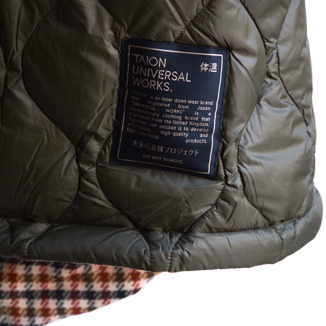 ダウン専業メーカーTAIONから、UNIVERSAL WORKS × TAIONのスペシャルコラボレーショモデル”REVERSIBLE DOWN MODS COAT”が入荷しました。