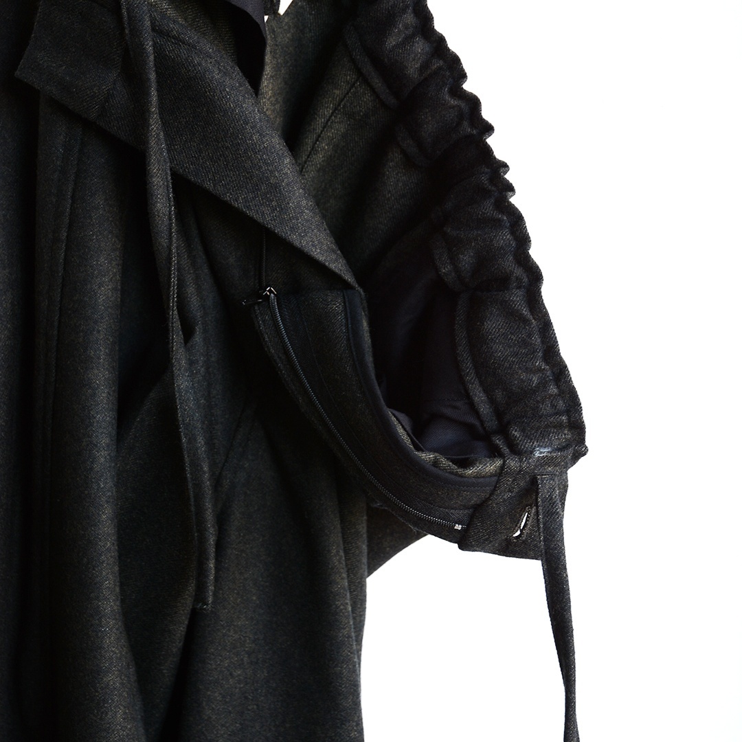 適度なハリと上品な光沢が特徴の素材は、シワになりにくく、保温性に優れているため、秋冬のコーディネートに取り入れやすく、ご自宅での洗濯も可能なので、ウール素材ながら気軽に扱えるのもポイントです。