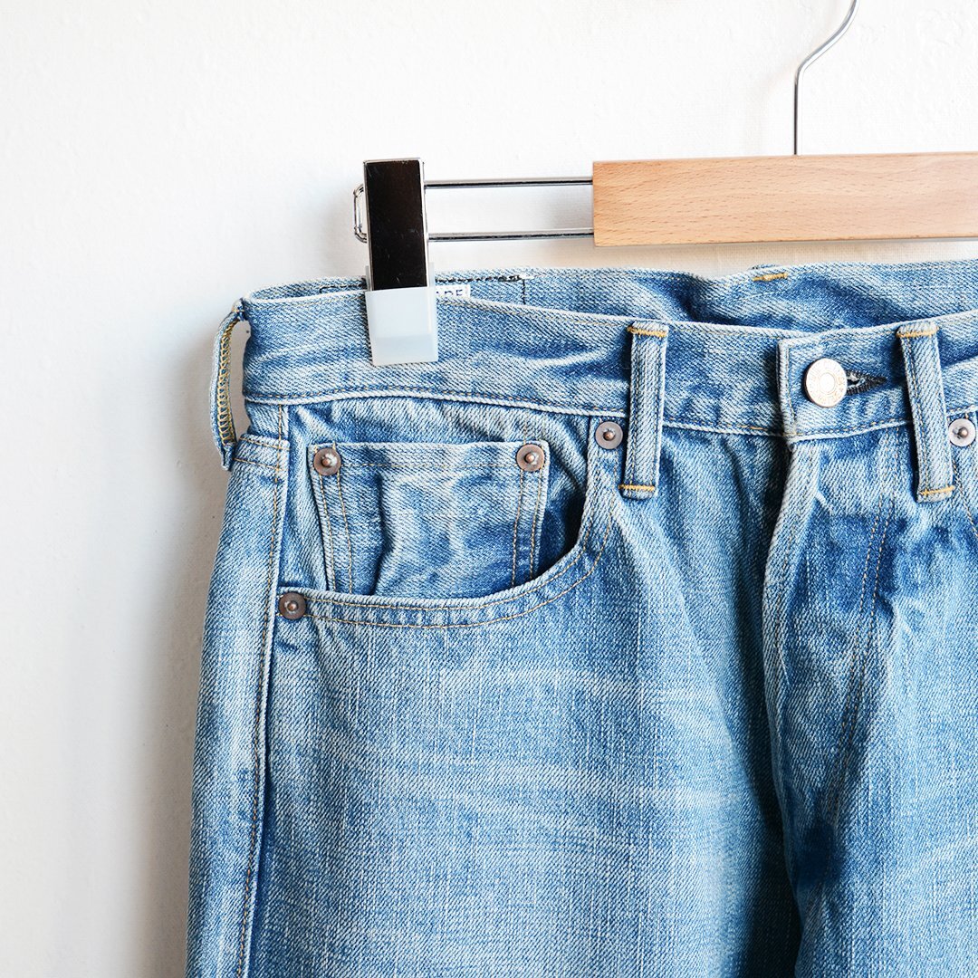 長年の着用と洗濯で色が抜け落ちたFADE BLUEは、熟練の職人の手によって再現されています。