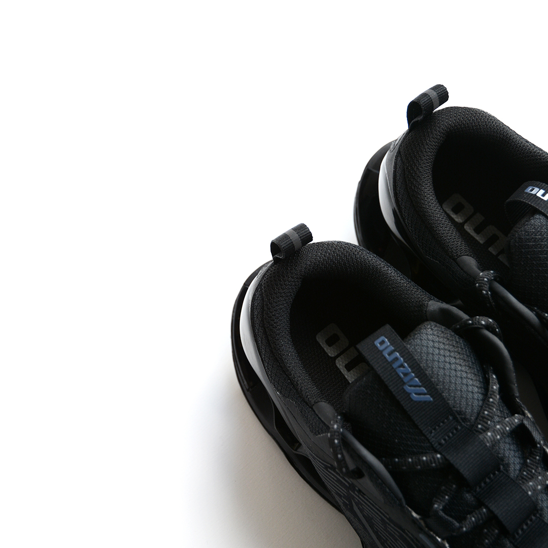 独特なハイテクスニーカーですが、履くと足元がスッキリと見えてセットアップからスポーツスタイルまで幅広く合わせていただけます。