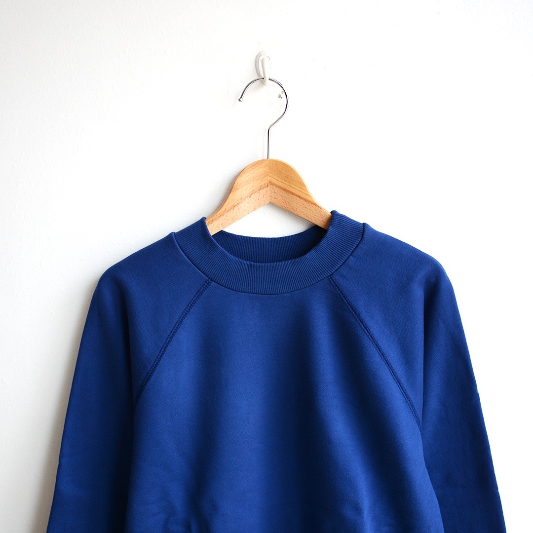 ベーシックなクルーネックのスウェットですが、見頃をコンパクトなボックス型のシルエットに、袖幅は適度にゆったりと仕上げることでカジュアルすぎない女性らしさを演出し、襟のリブ幅は広めに設定することで、首元が上品に引き立てるようデザインされています。
