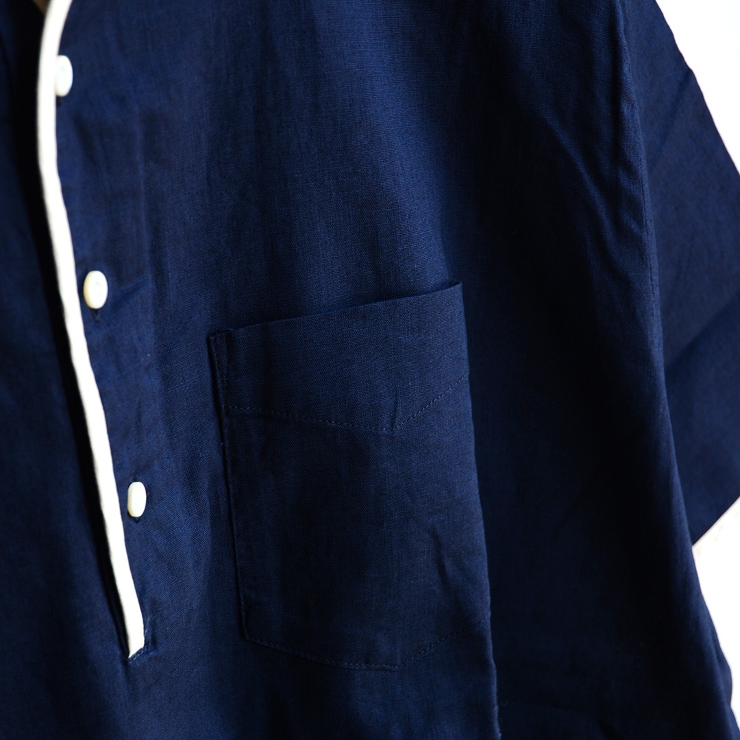 SIDOGRAS社製のシアサッカーを使用したMAROON SEERSUCKERは、シボ感のある生地を採用しナチュラルな雰囲気を演出。NAVY COTTON RINENはコットン×リネンの混紡糸を使用したシーチング素材で、ざっくりとした織りがドライなタッチを与える、着込むほどに味わいが増す無骨な一枚です。