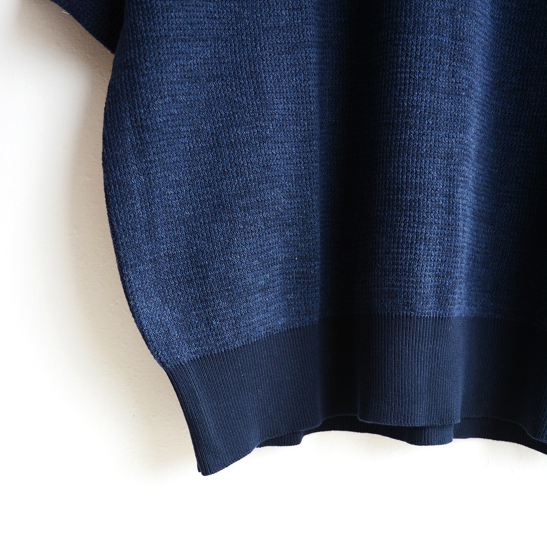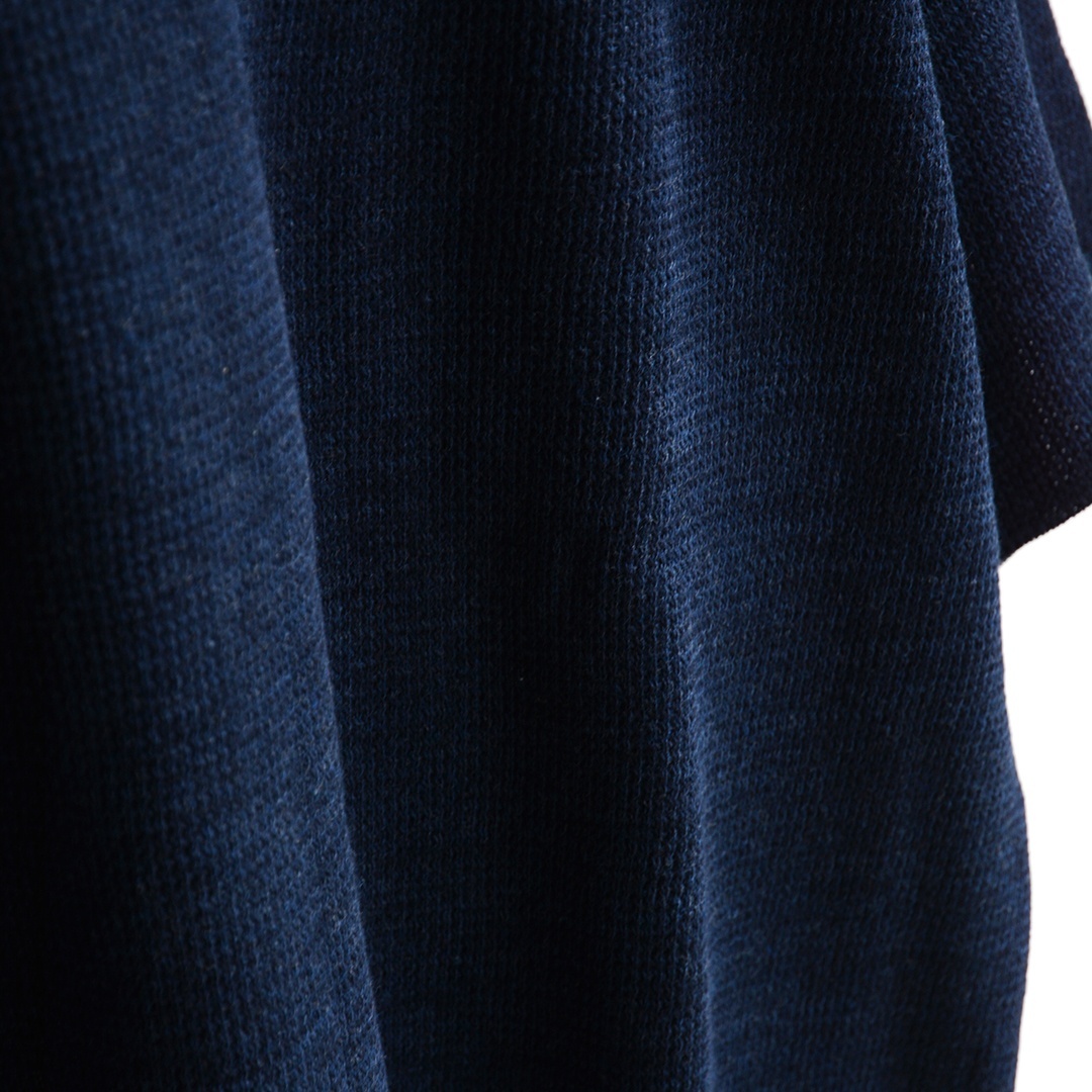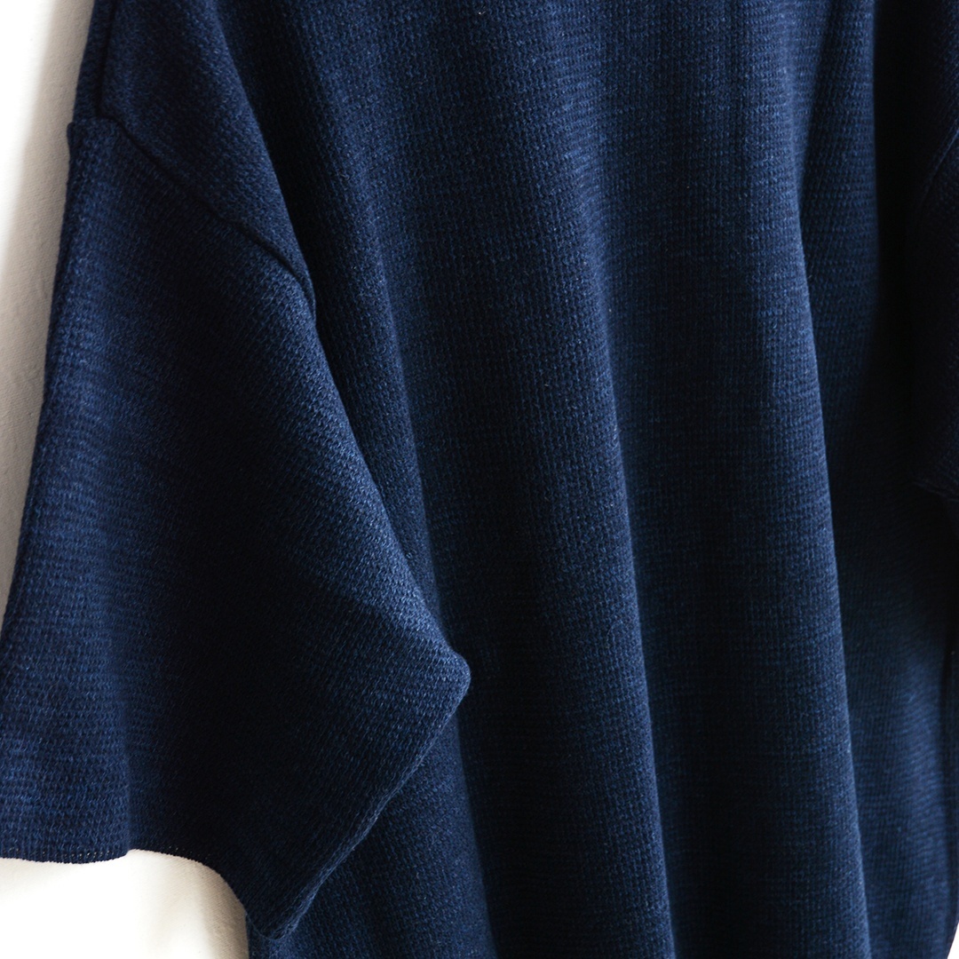 コットンコーマ糸を原料としているので、洗濯でのお手入れも容易です。汗をかく季節に風が抜けて涼しさも感じられる新しいニットのご提案です。