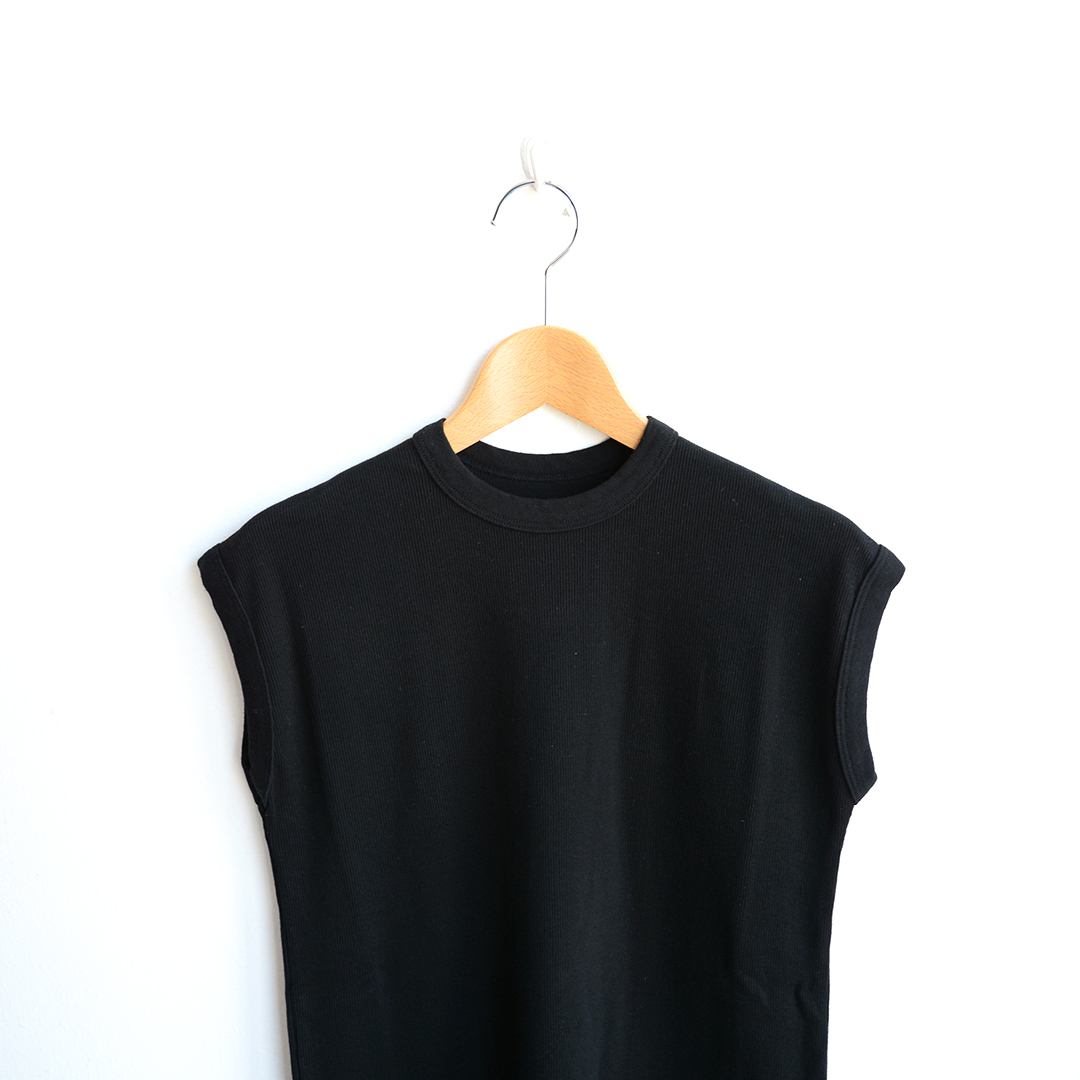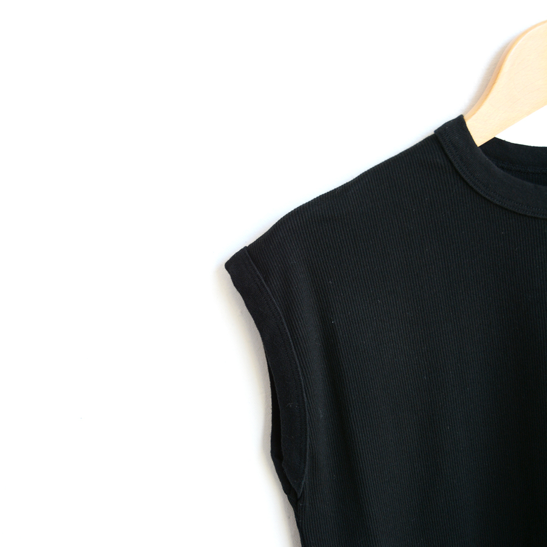首の開きが絶妙なので、カーディガンやジャケットはもちろん、ノースリーブのワンピースなど様々なアイテムのインナーとして活躍する便利な一枚です。
